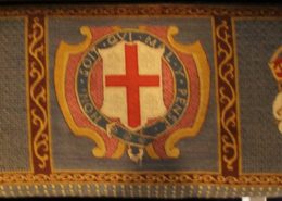 Its magnificent collection of canvaswork seat cushions and kneelers include heraldic designs and geometric designs.