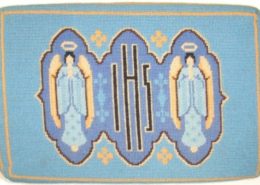 Church kneelers here lead with a handsome representation of the church, together with maps to make sure that you can find it. You need to know that you are in Constable country and that Stratford has been the Best Kept Village in Suffolk.